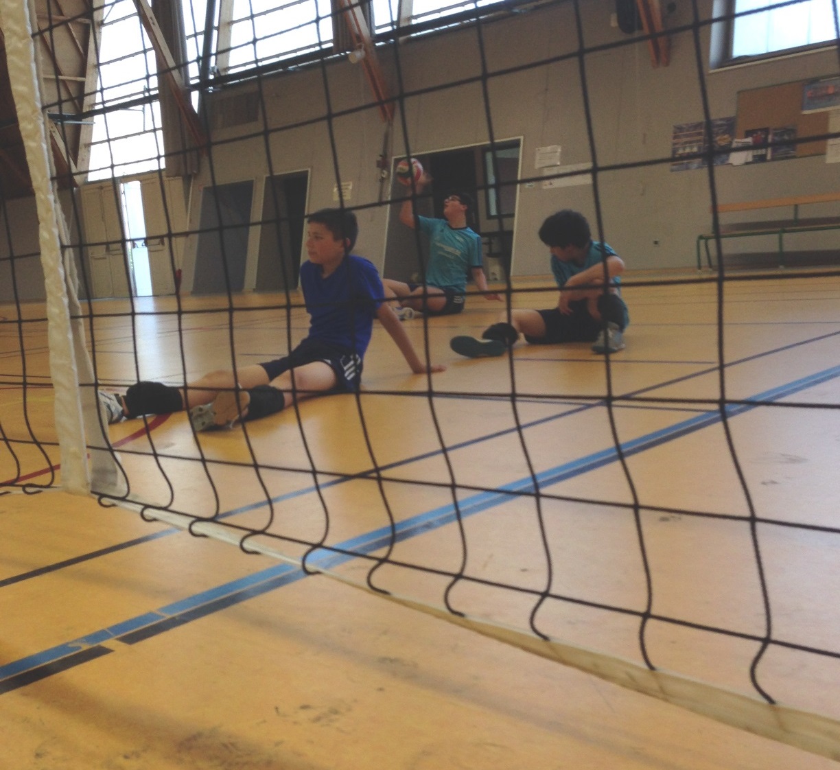 24/06/2016 - Découverte du volley assisPour le dernier entrainement de la saison, les jeunes ont expérimenté une branche peu connue du volley-ball : Le volley assis, ou volley handisport reprend les rêgles du volley avec quelques adaptations (taille du filet, fautes).
